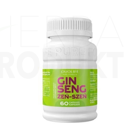 Najlepiej spożyć przed 3/2026 DUOLIFE Żeń-szeń to suplement diety z linii Pure Formula zawierający kompozycję ekstraktów z trzech gatunków żeń-szenia: właściwego, amerykańskiego oraz syberyjskiego w skoncentrowanej porcji. Jest ona zamknięta w kapsułkach z organicznej pochodnej celulozy (HPMC) o opóźnionym czasie uwalniania.? Żeń-szeń wspomaga witalność i koncentrację oraz sprzyja utrzymaniu sprawności seksualnej.
